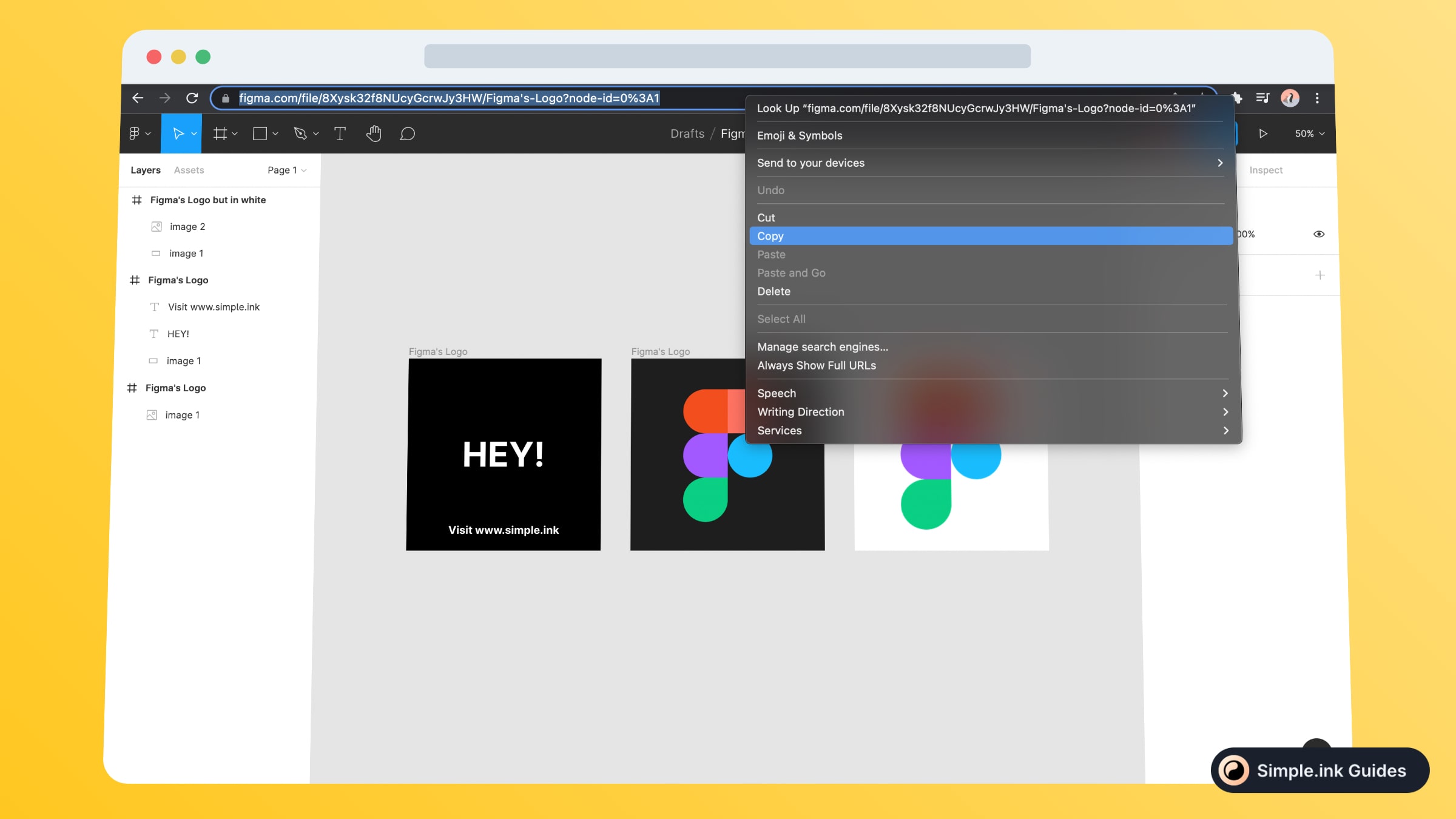 You can either copy the URL of your Figma file from the search bar of your browser, or you can simply click the "Share" button (top-right corner of the document) and copy the link. This is the same link as the one from the search bar.